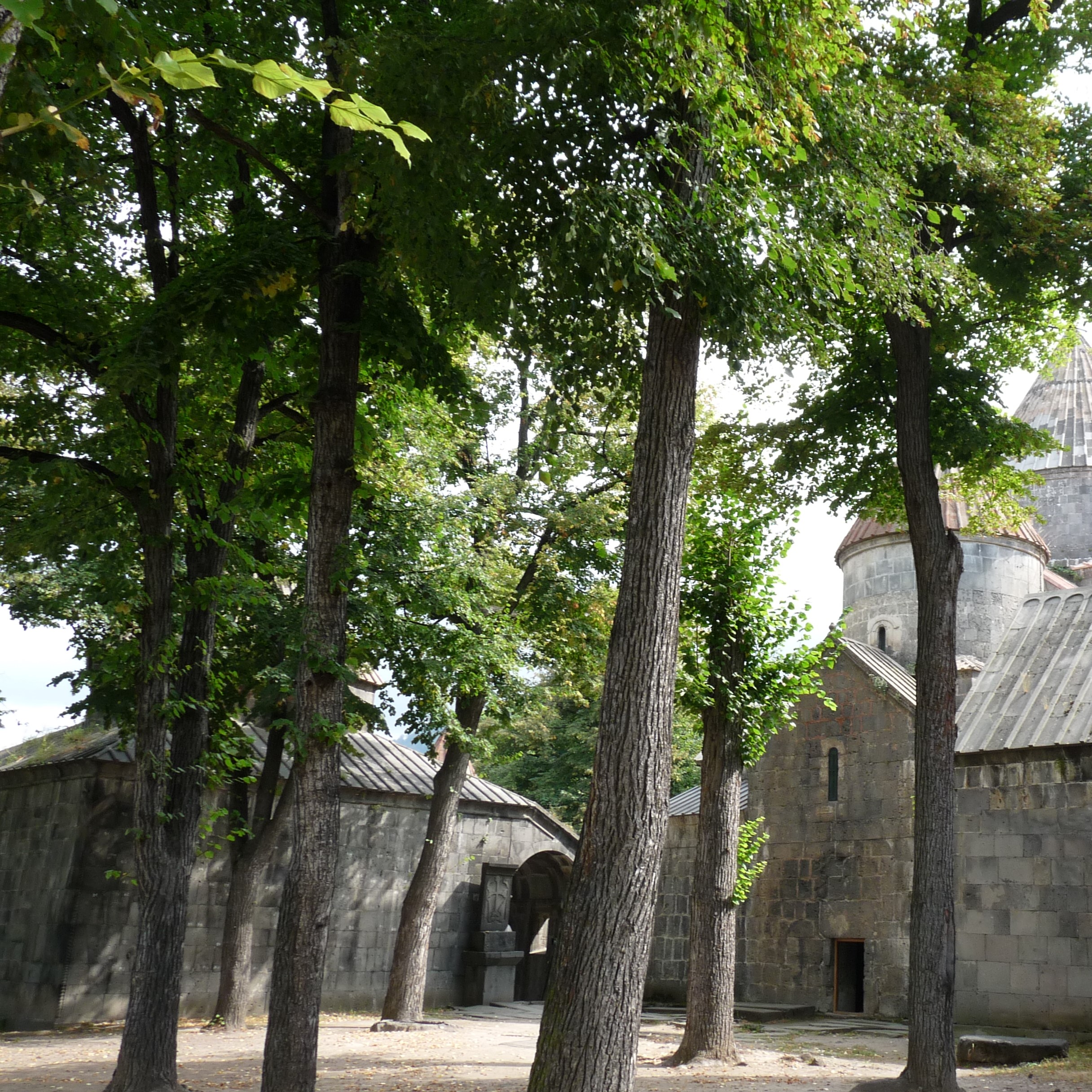Het ziet er vanochtend wat dreigend uit, maar het is droog. We beginnen de dag met … jawel, een klooster! Nu het 10e eeuwse Haghpatklooster. Het complex heeft verschillende kerken uit die tijd en een bibliotheek. Een losstaande klokkentoren van drie verdiepingen stamt uit 1245.