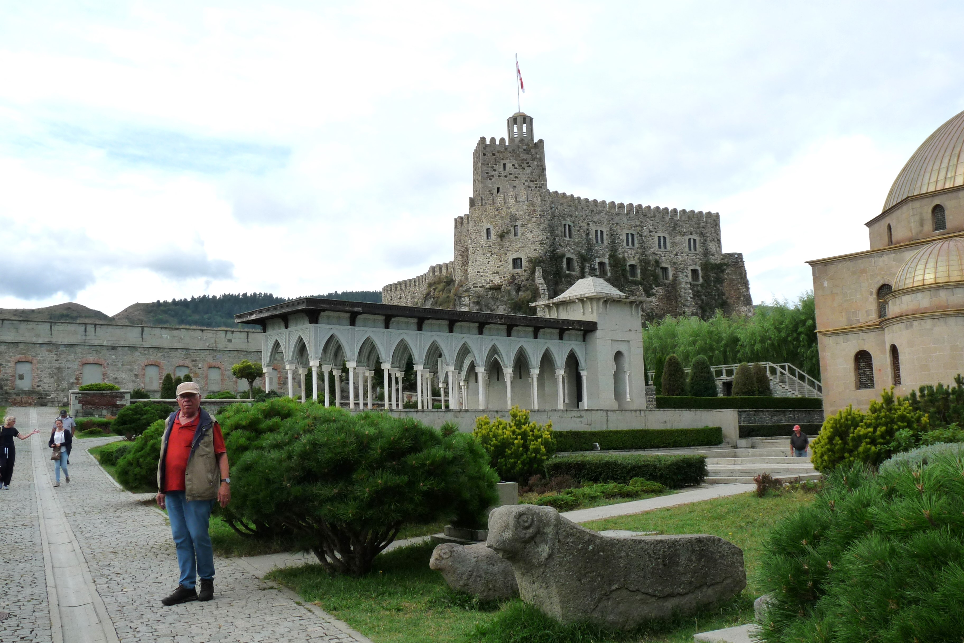 Verder naar Achaltsiche. Maar eerst wisselen we de Armeense drams voor Georgische lari’s. In het hotel hebben we een aangename kamer met een enorm balkon. Maar de pret is van korte duur, want net als we ons een beetje geïnstalleerd hebben merken we dat het toilet niet doorspoelt. Dus alles weer terug in tas/koffer/rugzakken en naar een andere kamer. En dan volgt er een ware wolkbreuk. Als het even wat minder wordt snel een restaurant opgezocht. Weer terug op de kamer blijk ik bij de ‘verhuizing’ mijn nachtgoed vergeten te zijn. Maar voordat ik dat bij de receptie kan melden wordt het keurig op de nieuwe kamer gebracht.