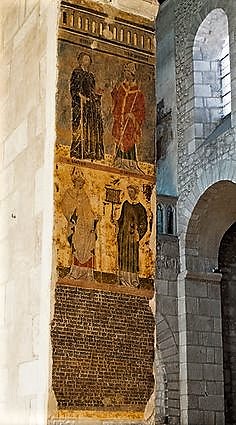 Aan het eind van de middag weer richting Peubras. Tegen etenstijd rijden we naar een restaurant aan de Sioule voor het afscheidsetentje. Onderweg maken we nog een korte stop in Ébreuil, waar een voormalige 12e eeuwse abdijkerk staat. De kerk is heel eenvoudig, weinig versiering maar heeft wel een aantal fresco’s.