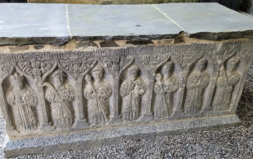 In deze kerk is o.a. een aantal, soms zeer oude, grafmonumenten te zien. Op de oudste, ws. van ridders, zijn reliëfs, waarop verschillende apostelen en heiligen zijn afgebeeld. Ook een paar bisschopsgraven.