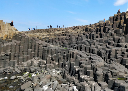 Na de lunch gaan we naar Giant’s Causeway. Dit is een rotsformatie aan de NO-kust van Noord-Ierland, die bestaat uit zo'n 40.000 basaltzuilen. De rotsen zouden zijn ontstaan bij een vulkaanuitbarsting 60 miljoen jaar geleden. Hierdoor ontstond een dik lavaplateau. Deze lava koelde af en kromp waardoor we nu deze aparte basaltzuilen zien.