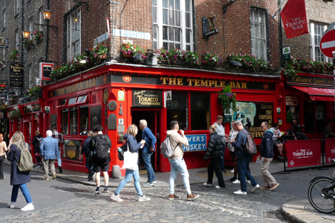 We zijn nu in de wijk Tempel Bar, genoemd naar de beroemde pub ‘the Tempelbar’.