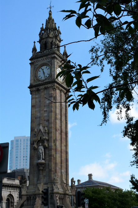 Vandaag gaan we Belfast ontdekken. Onze eerste indruk is die van een stad met allure. Prachtige, grote rijke gebouwen. We lopen eerst naar het Grand Opera House, met de oude en nieuwe gevel. Aan de overkant daarvan staat een gigantisch gebouw van de Presbyteriaanse kerk. Ook zien we de oudste pub van de stad, the Crown. Zo vroeg op de ochtend is hij uiteraard nog gesloten en we zullen er later nog terugkomen. Dan lopen we naar de City Hall, een monumentaal gebouw van rond 1900. Het standbeeld van koningin Victoria staat prominent voor het gebouw. Voordat de City Hall op deze plek gebouwd werd, stond hier White Linen Hall, een belangrijke, internationale linnenhandelsplaats. Het witte gebouw is in barokstijl gebouwd en heeft een koperen koepeldak van 53 m hoog.