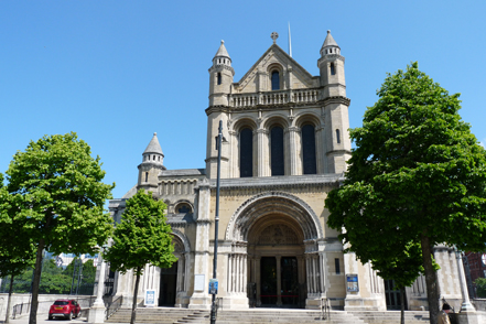 De kerk heeft mooie gebrandschilderde ramen en een paar schitterende glasmozaïeken. Die in het timpaan stelt St. Patrick voor. Die in de doopkapel de H. Geest. De laatste werd gemaakt door twee zusters, die er 7 jaar aan werkten en 150.000 stukjes glas gebruikten.
