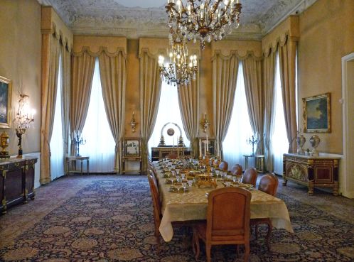 Het witte paleis oogt als een privékliniek: steriel en zonder enige opsmuk. Maar binnen pracht en praal op Franse leest geschoeid.