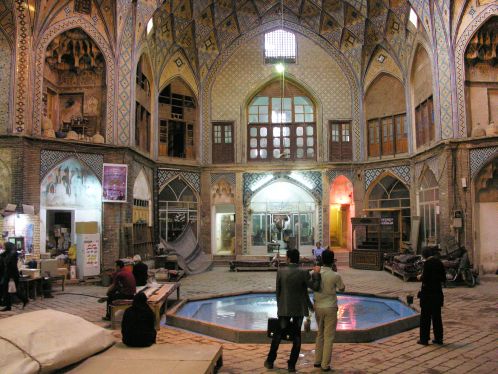 In het centrum van de bazaar is een grote ruimte met een prachtige koepel. Het blijkt een oude karavanserai te zijn, die dateert uit 1868, en waar nog steeds de beroemde Kashan tapijten verkocht worden. De tapijten uit de Fars provincie en in het bijzonder die uit Kashan zijn wereldberoemd. De wol voor de tapijten is meestal geschoren door mannen en vrouwen zijn meestal verantwoordelijk voor het weven.