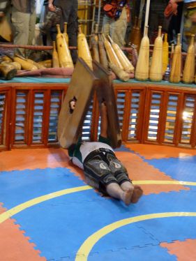 Ik ben blij als we weer bij het hotel zijn. Daar eten we gezamenlijk en worden de chauffeurs en reisleidster in het zonnetje gezet. En dan rond 21.30 uur naar bed, want het wordt een korte nacht. Van slapen komt echter niet zo veel, want vlak voor het raam is een sterke lamp die het hotel mooi moet uitlichten. En passent worden wij ook uitgelicht! Ik kan op mijn horloge kijken zonder het licht aan te doen.