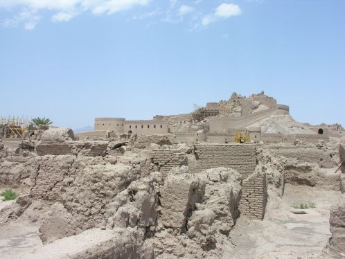 We picknicken op het veldje voor de moskee en vervolgen onze rit. De woestijnstadjes krijgen hun water via het systeem van qanats. Dit zijn ondergrondse kanalen, die vanaf de bergen water de droge vlakte invoeren, waar ze onder meer voor irrigatiedoeleinden worden gebruikt. De kanalen liggen 10 tot 30 m diep. Deze vorm van waterhuishouding wordt hier en daar nog steeds gebruikt in Iran. Omdat het watertransport onder de grond plaatsvindt, is het verlies door verdamping gering en kan het water over aanzienlijke afstanden (wel tot 50 km) door de woestijn worden gevoerd naar een plek die voor landbouw geschikt is. Heel vernuftig.
