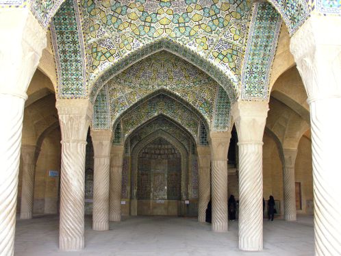 De moskee is een van de grootste en misschien wel de mooiste van Iran. De ingang is een gebouw op zich, waarna je op een binnenplaats komt met daaraan op het oog vier gevels van moskeeën. Onder één van deze gevels bevindt zich de echte moskee. Dit bouwwerk is van binnen en buiten helemaal versierd met veelkleurige mozaieken in bloemen- en plantenmotief en behoort tot het mooiste uit de Iraanse cultuur.