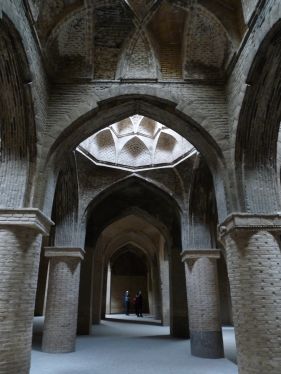 Onderweg bezoeken we het historische complex van Izad Khast. Een nog onontdekt plekje lijkt het, een eindje van de hoofdweg af. Het bestaat o.a. uit een goed bewaarde karavanserai uit de 16e eeuw en de resten van een oud kasteel uit de 5e eeuw. Iets verderop ligt ook nog een vervallen dorpje uit de 18e eeuw. In de karavanserai kun je goed zien hoe het vroeger geweest moet zijn: de grote binnenplaats voor de kamelen en andere lastdieren, kamers en een keuken voor de reizigers daar omheen. Het geheel werd afgesloten door een hoge poort.
