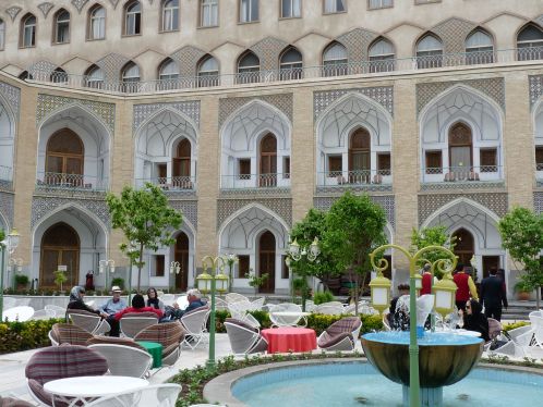 Aangzien we om 12.30 uur de hotelkamer moeten verlaten hebben we niet heel veel tijd meer en besluiten we koffie te gaan drinken in ongeveer het duurste hotel van Isfahan, het Abbasi Hotel, een vijfsterren hotel dat gevestigd is in een oude karavanserai. Niet omdat het zo duur is, maar omdat het een heerlijk terras heeft in een grote binnentuin. En terrasjes vind je in Iran niet.