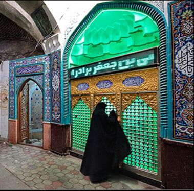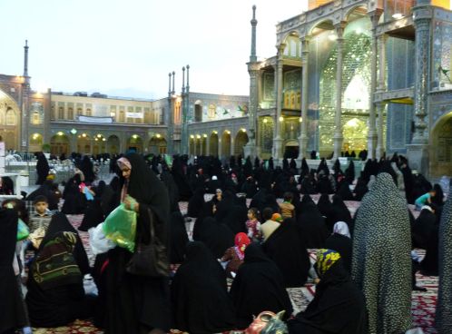 Het heiligdom van Fatima Masumeh met een oppervlakte van 38000 vierkante meter is het kloppende religieuze hart van de stad en is 24 uur per dag open. In 816 stierf Fatima. Ze is hier begraven. Mensen komen hier bidden voor hun noden en geloven dat hun gebed hier krachtiger is dan in de moskee of thuis. Men zegt dat er zelfs genezingen bekend zijn. Het lijkt zoiets als Lourdes. Er komen 20 miljoen(!) pelgrims per jaar. Op een binnenplaats omgeven door gebouwen zitten honderden vrouwen en kinderen op kleden op de grond: het lijkt één zwarte massa.