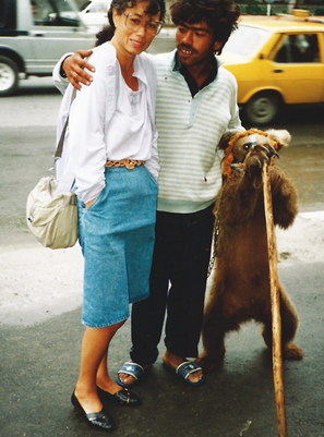 Buiten het paleis staan zigeuners met beren aan een ketting. Een van hen slaat een arm om me heen ... griezelig, vies en doodeng!