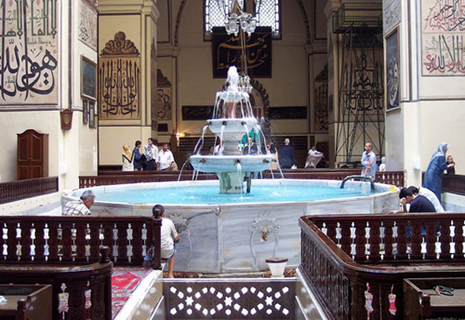 Bij de ingang van de moskee is een helling gebouwd zodat sultan Ahmet te paard de moskee binnen kon gaan en pas hoefde af te stijgen bij de koninklijke loge.