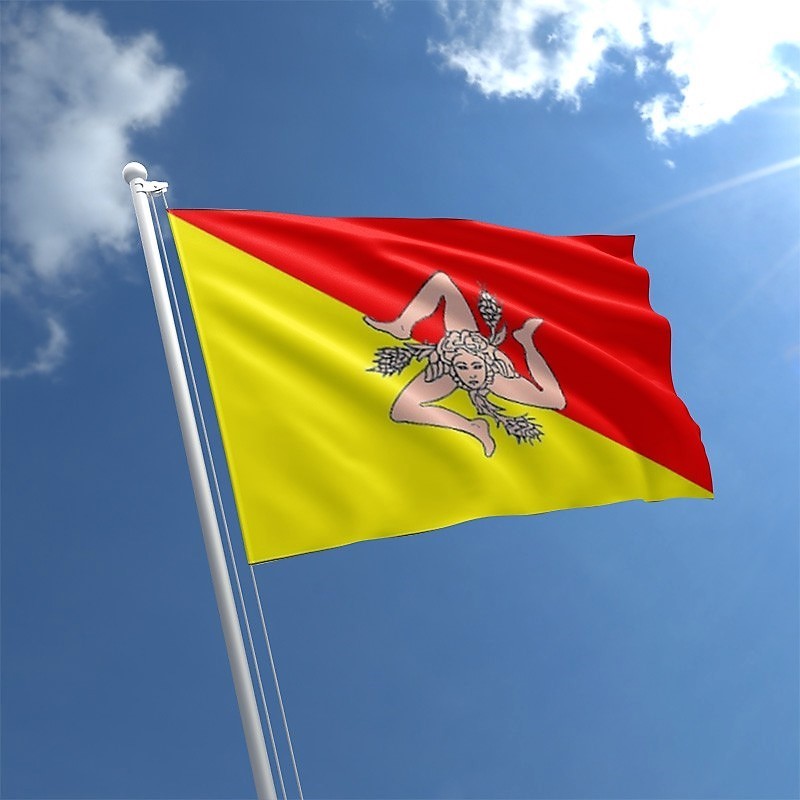 De vlag van Sicilië heeft zijn oorsprong in een volksopstand tegen de Franse overheersers in 1282 die zich over het hele eiland verbreidde. Daarbij was de triskelion of trinacria (resp. Grieks en Romeins) het symbool. Deze voorstelling van een rad met drie benen was al sinds de oudheid bekend.
