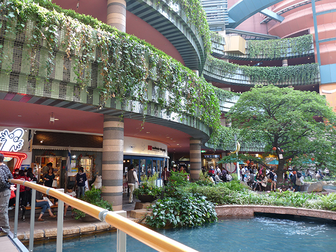 Wat verderop is Canal City; ook al een enorm winkelcomplex met gebouwen in verschillende kleuren rond een kanaaltje en binnenplaatsen met fonteinen. Het is er erg druk met opvallend veel jonge mensen en we moeten even zoeken naar een plekje waar we kunnen lunchen. Alle Amerikaans fastfoodketens vind je hier.