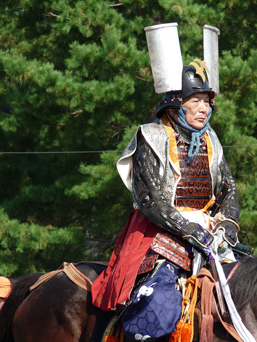 Voordat de parade begint is er eerst nog een ceremoniet bij het keizerlijk paleis. Dan trekt de historische optocht met zo'n 2000 deelnemers aan ons voorbij. Het duurt 2,5 uur voordat iedereen langs gekomen is. Het is tropisch warm (30°) en op het heetst van de dag, maar het is ook heel mooi om te zien hoe al deze mensen, jong en oud, met ernstige gezichten in deze eindeloze stoet mee lopen. Opvallend is dat het geen vrolijke optocht is: vrijwel alles voltrekt zich in doodse stilte.