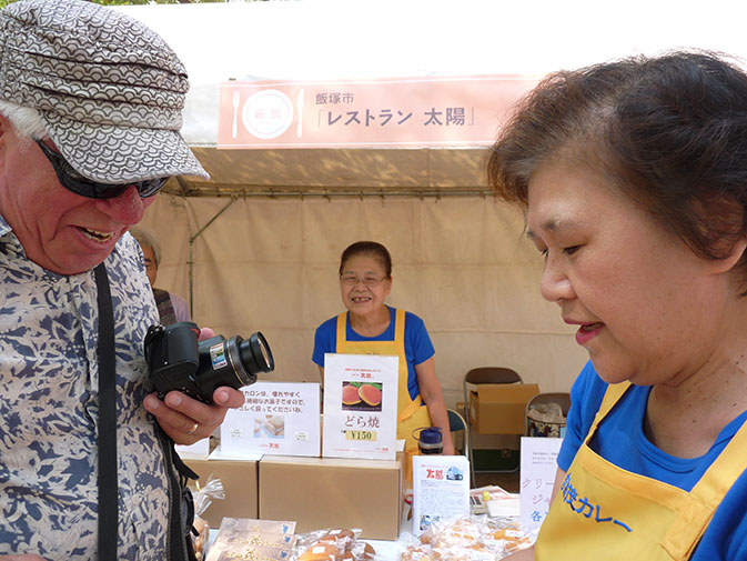 Het is stralend weer met een heerlijke temperatuur. We gaan naar de wijk Tenjin, het stadshart met eindeloos veel winkels en waar zelfs hele lange ondergrondse winkelstraten zijn. Bij de enorm grote voedselafdeling van het warenhuis Mitsukoshi kijken we onze ogen uit. Ten eerste omdat de meeste produkten onbekend voor ons zijn, maar ook omdat alles er werkelijk schitterend uitziet. Alle etenswaren zijn ware kunststukjes en we mogen regelmatig van dit onbekende lekkers proeven. En hygiëne in de overtreffende trap, evenals de voorkomendheid trouwens.