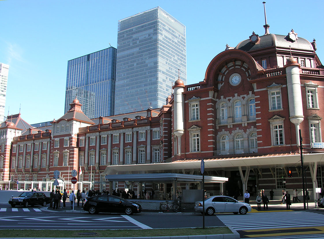 Na dit moderne bouwwerk lopen we naar de westelijke ingang van het Centraal Station van Tokyo. Er wordt gezegd dat het een kopie is van het Amsterdamse Centraal Station. Dat vinden we niet helemaal waar, maar het werkt wel een beetje bevreemdend om een bakstenen gebouw in 19e eeuwse stijl te zien met op de achtergrond de glazen wolkenkrabbers.