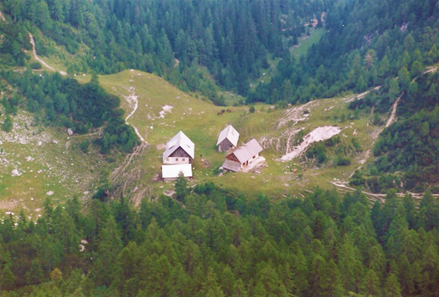 Dan rijden we verder naar een hoog plateau met veel bos met enorme kaarsrechte stammen, genaamd Pokljuka, en lopen naar de Lipanca berghut. Hier blijven Marjana en Mateja achter.
