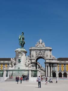 De Arco Triunfal vormt de toegangspoort tot de Baixa met daarvoor, vlak tegen de Taag, het Praça de Comércio. Het ruiterstandbeeld van koning José I vormt het middelpunt van dit 200 bij 200 meter grote plein. Helaas zijn ze bezig met de renovatie van het plein, het blijft echter imponerend.