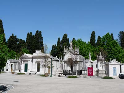 We rijden onbedoeld naar het eindpunt en nemen daar dan een kijkje op het Cemitério dos Prazares, een nogal vreemde naam voor een kerkhof want het betekent zoveel als Kerkhof van Vermaak. Het is wel een indrukwekkend kerkhof en doet een beetje denken aan Pere Lachaise in Parijs. Keurige lange straten met bomen en daarlangs de meest bizarre graven.