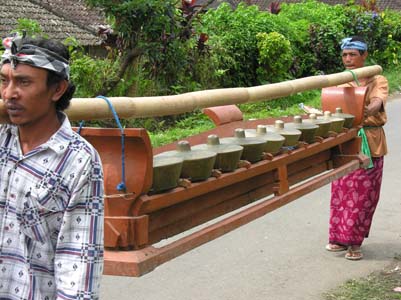 Ondanks de toeristen blijft de Balinees zijn tradities trouw. Elke ochtend worden offertjes gelegd. Het zijn kleine platte bakjes gemaakt van gevlochten bladeren met daarin een paar bloemen, en bijv. een koekje of wat fruit en ook wel een beetje gekookte rijst. Vaak wordt er ook nog een wierookstokje in gestoken.