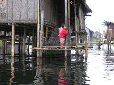 Eerst bezoeken we de drijvende markt van Ywama, maar die hadden we beter kunnen overslaan: het is vreselijk, want het zijn voornamelijk bootjes met souvenirverkopers. Het dorp is gebouwd op het water. In Giethoorn en Venetië is ook veel water, maar de huizen hier staan alle op palen en nergens heb je vaste grond onder de voeten. Zonder boot ben je aan huis gekluisterd!