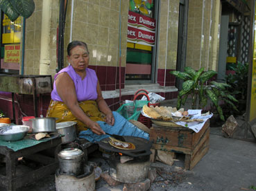 We vertrekken om 06.30 uit het hotel en stappen om 10.15 het ons bekende hotel in Yangon weer binnen. We hebben een binnenlandse vlucht gemaakt in plaats van een erg lange busreis. Het is in Yangon vochtig en ruim over de 30°; het voelt erg plakkerig aan. ’s Middags lopen we nog wat rond in de stad en eten een flinterdun pannenkoekje met palmsuiker, pinda’s en geschaafde kokos bij een straatverkoopster die ze vers bakt.