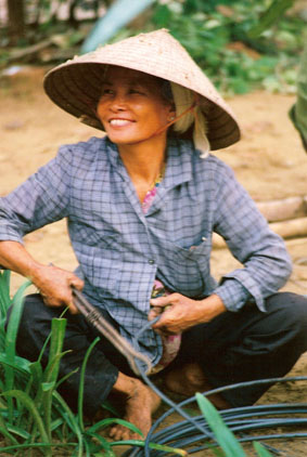Vietnamees van 60 jaar, die in moeizaam Engels met ons wil praten. We verbazen